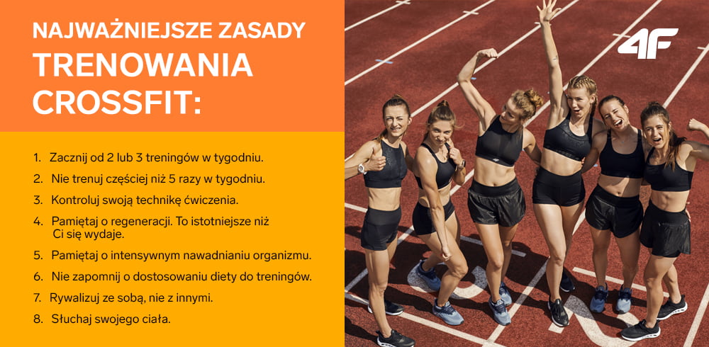 Crossfit to nic innego jak intensywny ogólnorozwojowy trening całego ciała. W wykonywaniu poszczególnych ćwiczeń chodzi o angażowanie jak największej liczby partii mięśniowych. Krótkie zazwyczaj sesje treningowe mają wyjątkowo intensywny i uniwersalny charakter. Podczas ich trwania wykonuje się różnorodne ćwiczenia, począwszy od biegania, rowerka i skakania, przez podciąganie i wykonywanie pompek, aż po bardziej zaawansowane ćwiczenia z wykorzystaniem akcesoriów. Przerwy pomiędzy poszczególnymi seriami ograniczone są do niezbędnego minimum. Crossfit jako metoda treningowa bazuje na dążeniu do jak najlepszej sprawności fizycznej w kilku najważniejszych obszarach: