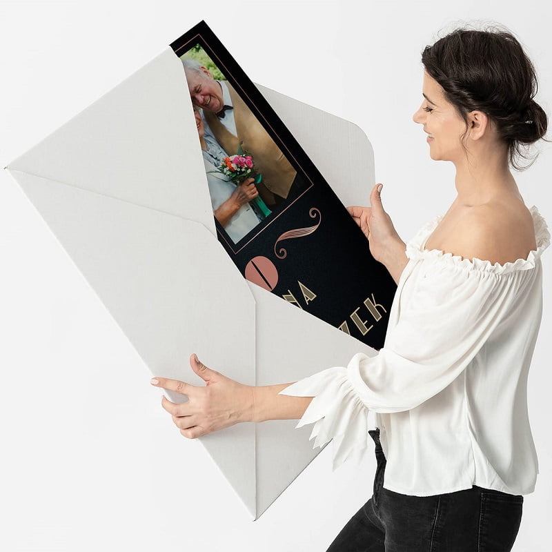 Tradycyjne kartki z życzeniami są już wszystkim bardzo dobrze znane, dlatego warto wybrać taką, która na długo zostanie w pamięci naszych jubilatów. Ten pomysł na prezent świetnie sprawdzi się również na pięćdziesiątą rocznicę ślubu. Taką kartkę możemy podarować rodzicom lub dziadkom. Wyjątkowy charakter nadają tutaj zdjęcia, które są umieszczone na pierwszej stronie kartki- po jednej możemy umieścić zdjęcie ze ślubu, a po drugiej te aktualne. Gwarantujemy, że taki prezent sprawi, że jubilaci będą zaskoczeni! Taka kartka to powrót do wspomnień, ale także i przypomnienie ile małżonkowie przeżyli już ze sobą lat. W środku można umieścić również własne, indywidualne życzenia.